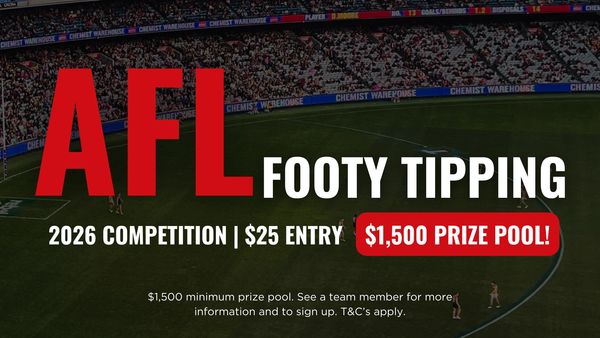 Grab an ice-cold tank beer fresh from our bronze tanks, enjoy our sports bar menu packed with pub classics, and take advantage of monthly drink specials while watching the action unfold. Check out the schedule below to see all the live sport streaming this week at The Dingley Hotel Sports Bar.