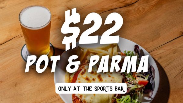 Enjoy our famous Chicken Parma with a pot for just $22 at the sports bar. T&C's apply.